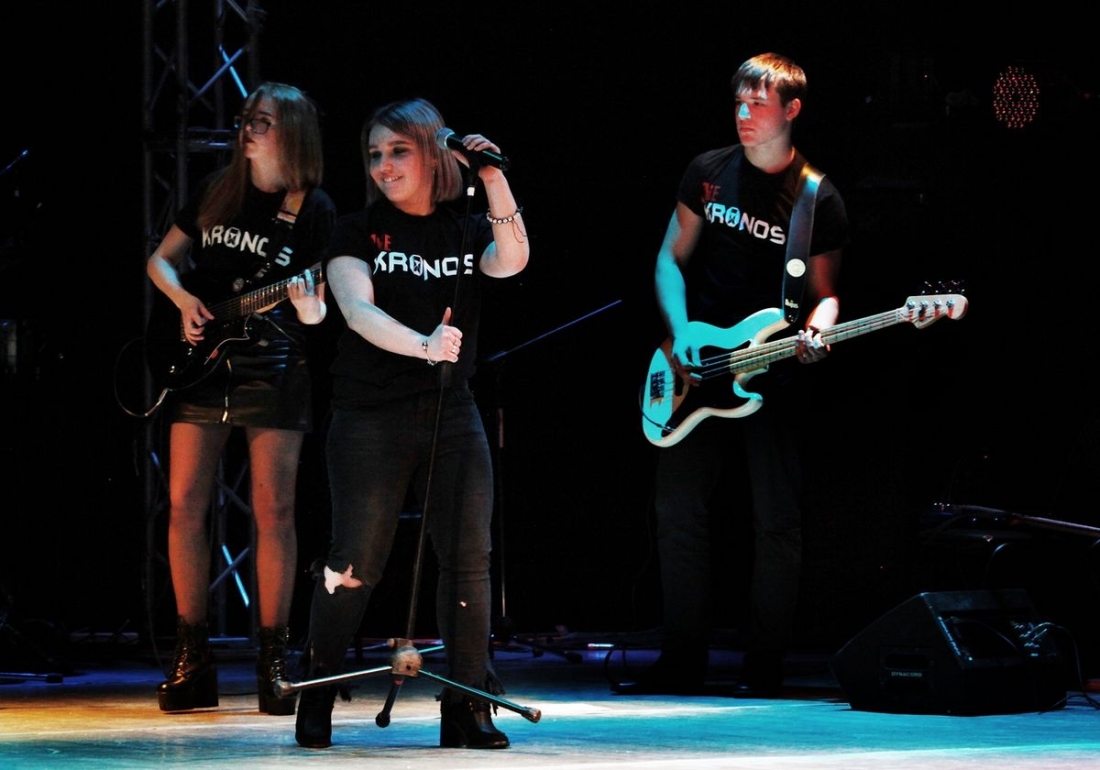 Впервые в истории Саткинского района со сцены Дворца "Строитель" в исполнении молодежной музыкальной группы "Кронос" звучали самые популярные и любимые ценителями этого жанра музыки рок-композиции.